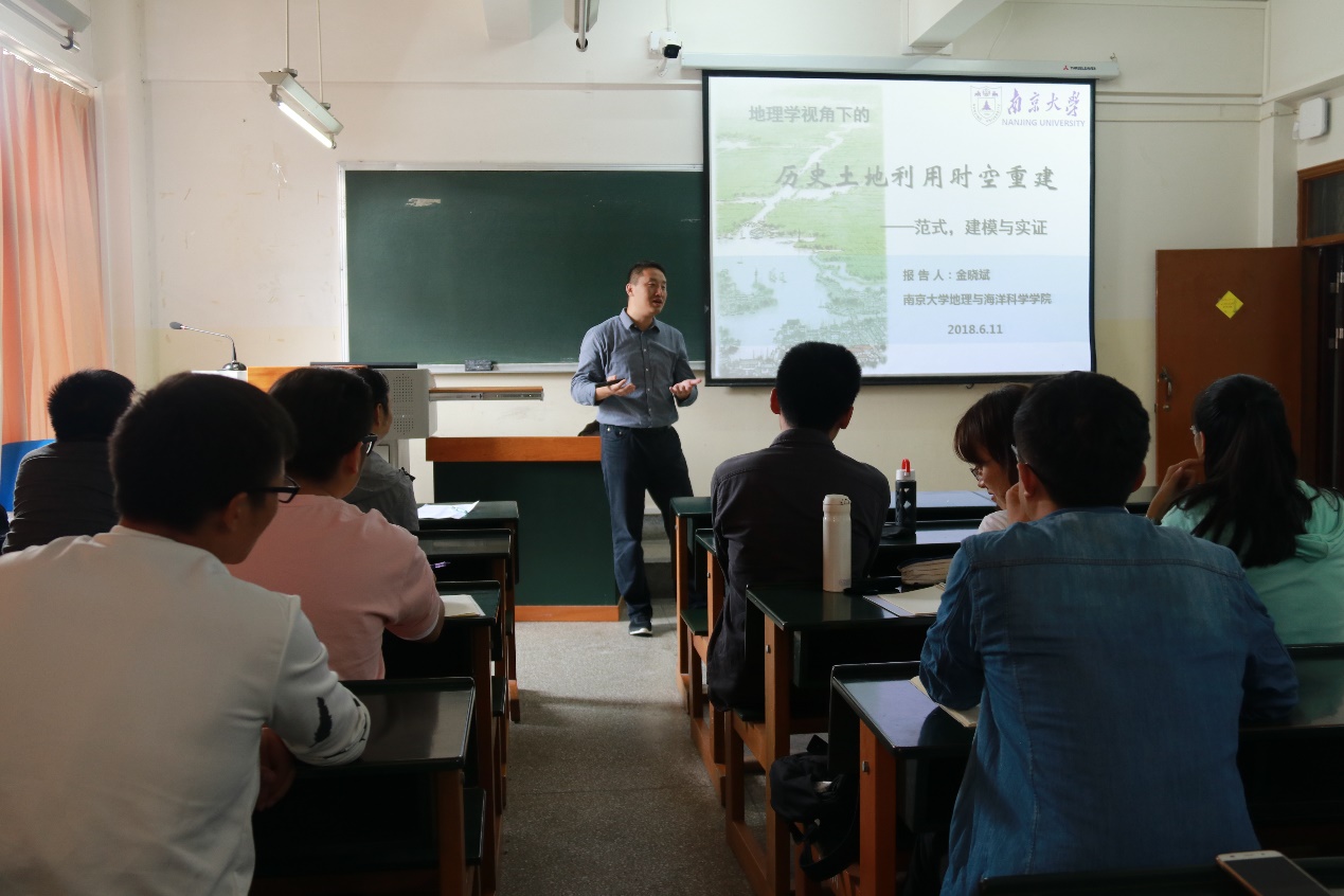 在与师生进行交流讨论时,金晓斌教授对现场同学们提出了“历史学与地理学的研究范式如何结合”的问题,并对研究工作提出了展望,他认为,历史土地利用和人口格局变化,既是历史学关心的对象,也是地理学关心的内容,但历史学和地理学研究的范式、对象、方法、结果存在显著差异。目前地理学对土地利用过程、特征、格局分析、驱动机制的认识,是基于中短时期土地利用变化数据得到的;若利用更长时段的数据和重建结果,应可以得到完全不同的认识;历史土地利用重建工作中还需要引入更多的历史内容,引入更多有空间控制作用的数据,然后将这些数据与目前已经使用的模型、方法相结合。既要深入挖掘数据,同时也要不断挖掘模型,共同作用,推进重建工作在覆盖、地类、精度和解释力上的提升。