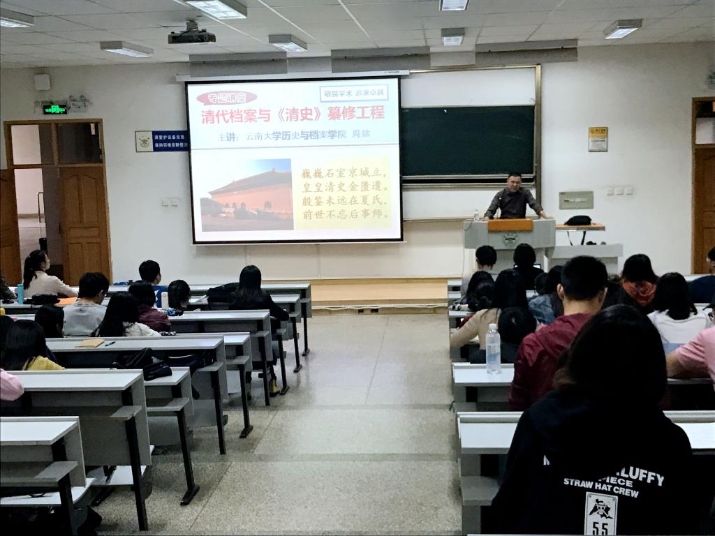 2018年6月12日19:00,新葡萄官网AMG周铭副院长在文渊楼405教室为同学们带来了一场题为“清代档案与《清史》纂修工程”的讲座。