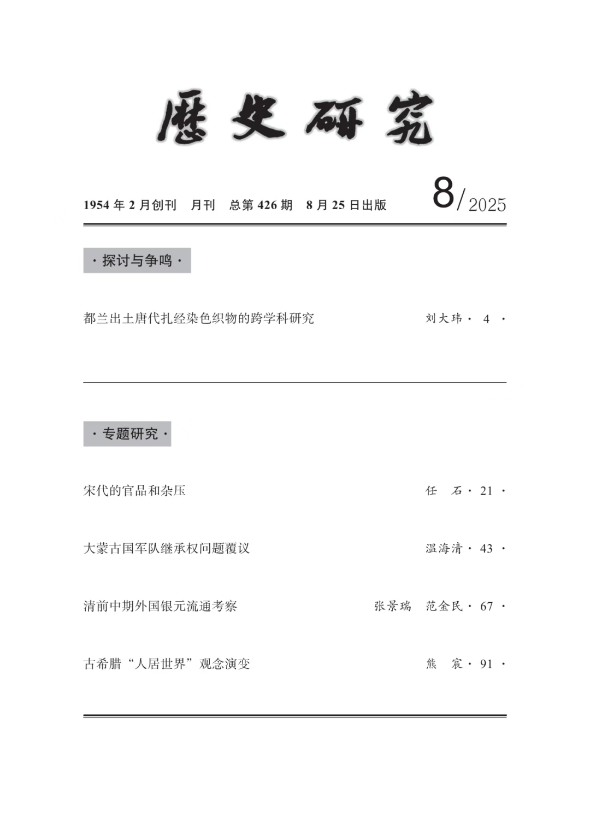 《历史研究》是由中国社会科学院主管、主办,中国历史研究院历史研究杂志社编辑出版的综合性历史学专业期刊,1954年1月创刊(双月刊),2024年改为月刊,主要发表我国历史学领域最新和最重要的学术研究成果。自创刊以来,《历史研究》一直受到国内外学术界的高度关注,是学界公认的我国历史学顶级学术期刊。