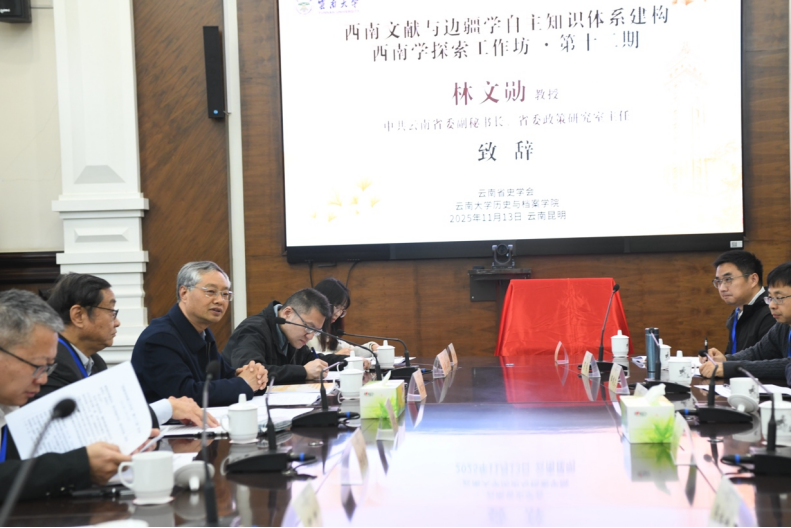 2025年11月13日,“西南学探索工作坊”第十二期开幕式暨“民国云南方志资料稿本丛刊”发布在新葡萄88805官网东陆校区会泽楼2027会议室顺利举行。本次会议由云南省史学会、新葡萄官网AMG共同主办,来自中国社会科学院、北京大学、四川大学、广西师范大学、云南省社会科学院、云南师范大学、大理大学、普洱学院等十余所高校和科研机构的专家学者齐聚新葡萄88805官网,围绕“西南文献与中国边疆学自主知识体系建构”展开学术交流与研讨。