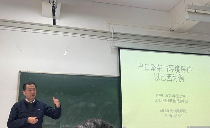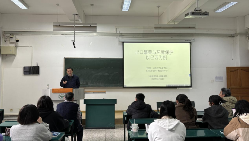 应新葡萄官网AMG邀请,北京大学历史学系、碳中和研究院双聘教授、博士生导师,北京大学世界环境史研究中心主任包茂红教授,于2025年11月22日上午在东陆校区作了题为“出口繁荣与环境保护:以巴西为例”的学术讲座。讲座由钱金飞教授主持,新葡萄官网AMG30多名师生参加了此次讲座。