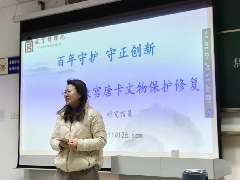 2025年11月19日上午,由新葡萄官网AMG、民族考古研究与文物评估中心联合主办的“新文科——新史学”融创讲坛暨考古文博讲坛第二十九讲在我校东陆校区文渊楼405教室成功举办。本次讲座特邀故宫博物院文保修复部张蕊研究馆员带来题为《百年守护 守正创新——故宫唐卡文物保护修复》的专题分享。讲座由新葡萄88805官网民族考古研究与文物评估中心陈果主任主持。